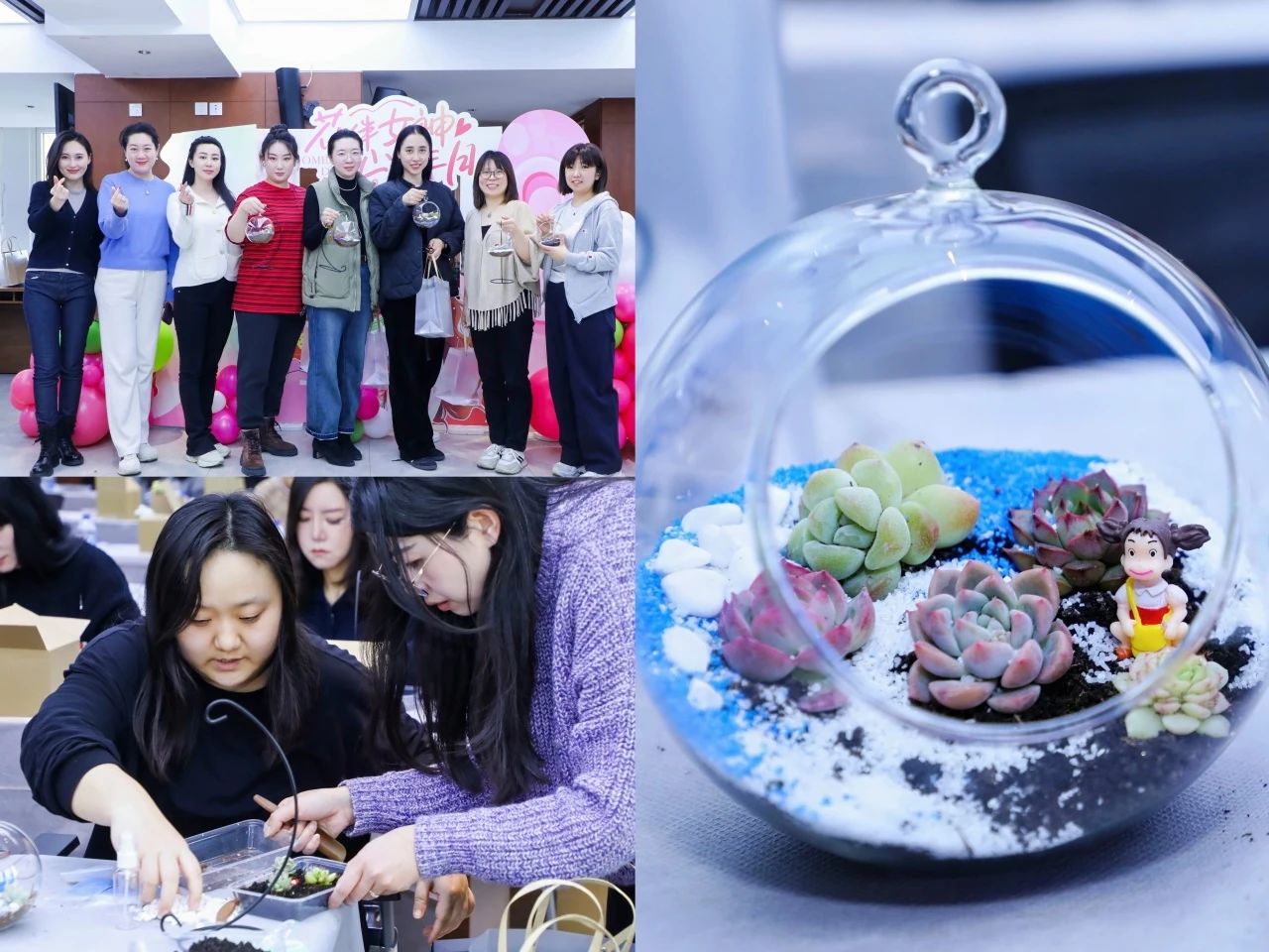 活動(dòng)以多肉微景觀DIY為主題,邀請(qǐng)了專業(yè)園藝師現(xiàn)場(chǎng)講解多肉植物的品種特性、養(yǎng)護(hù)技巧及微景觀設(shè)計(jì)原則,通過(guò)“理論+實(shí)操”結(jié)合的方式,幫助女職工掌握搭配技巧。從營(yíng)養(yǎng)土配比到植物布局,從苔蘚鋪陳到趣味擺件點(diǎn)綴,大家在輕松的氛圍中逐步解鎖“多肉美學(xué)”,通過(guò)綠植創(chuàng)作傳遞節(jié)日祝福,讓女職工們?cè)趧?dòng)手實(shí)踐中感受自然之美,釋放創(chuàng)意活力,一起度過(guò)了一個(gè)溫馨而有意義的節(jié)日。