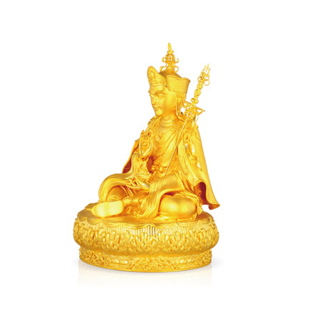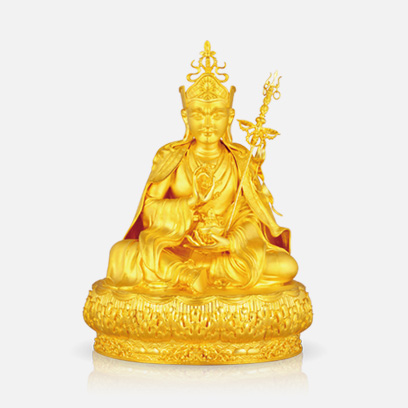 此蓮師造像參照嘉靖年間藏傳佛教漢地宮廷樣式,工藝使用了花絲鑲嵌中的庫胎、合胎、鏨刻手法。全手工制作,制作過程如法,殊勝。