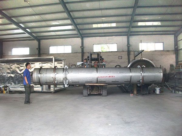 干燥的濕物料由皮帶輸送機或斗式提升機送到料斗,然后經料斗的加料機通過加料管道進入加料端。加料管道的斜度要大于物料的自然傾角,以便物料順利流入干燥器內。干燥器圓筒是一個與水平線略成傾斜的旋轉圓筒。物料從較高一端加入,載熱體由低端進入,與物料成逆流接觸,也有載熱體和物料一起并流進入筒體的。隨著圓筒的轉動物料受重力作用運行到較底的一端。濕物料在筒體內向前移動過程中,直接或間接得到了載熱體的給熱,使濕物料得以干燥,然后在出料端經皮帶機或螺旋輸送機送出。在筒體內壁上裝有抄板,它的作用是把物料抄起來又撒下,使物料與氣流的接觸表面增大,以提高干燥速率并促進物料前進。載熱體一般分為熱空氣、煙道氣等。載熱體經干燥器以后,一般需要旋風除塵器將氣體內所帶物料捕集下來。如需進一步減少尾氣含塵量,還應經過袋式除塵器或濕法除塵器后再放排放。